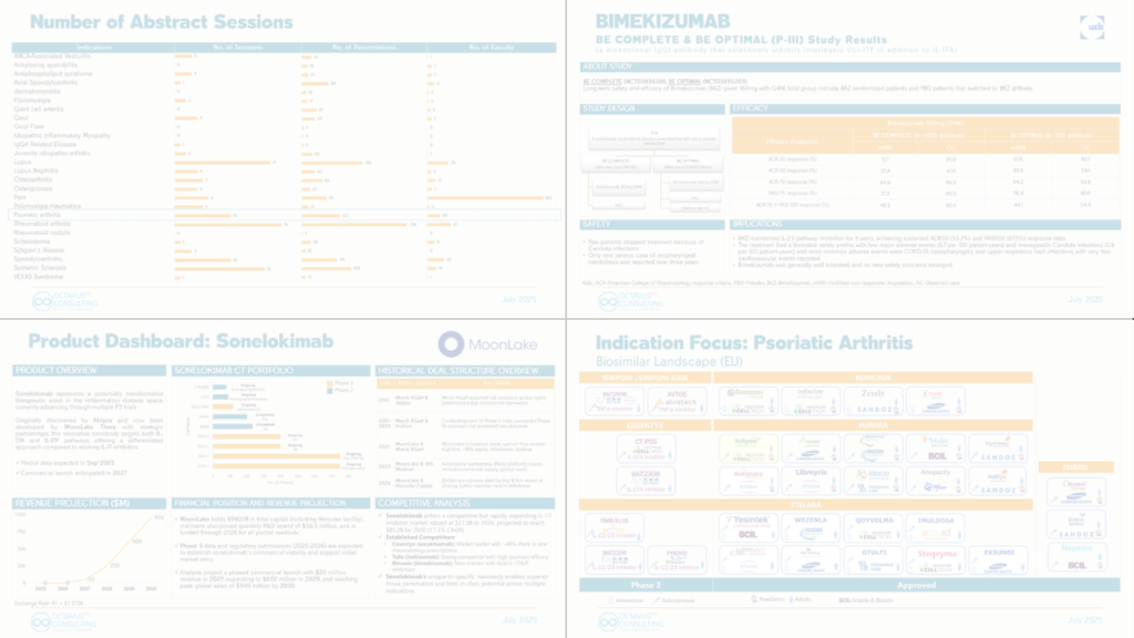 EULAR 2025 promotes a “hit hard and early” treat-to-target strategy in high-risk psoriatic arthritis (PsA) among other immunology indications, using frequent assessment and rapid therapy escalation to achieve remission or low disease activity. In Europe this strategy is enabled by a wide range of approved biologic and targeted synthetic DMARDs acting on TNF, IL17, IL23, JAK, and TYK2, with more TYK2 inhibitors and IL17focused agents in late-stage development. For Insights Corner we particularly focused on PsA although the EULAR focused on all the immunology indications including rare and orphans